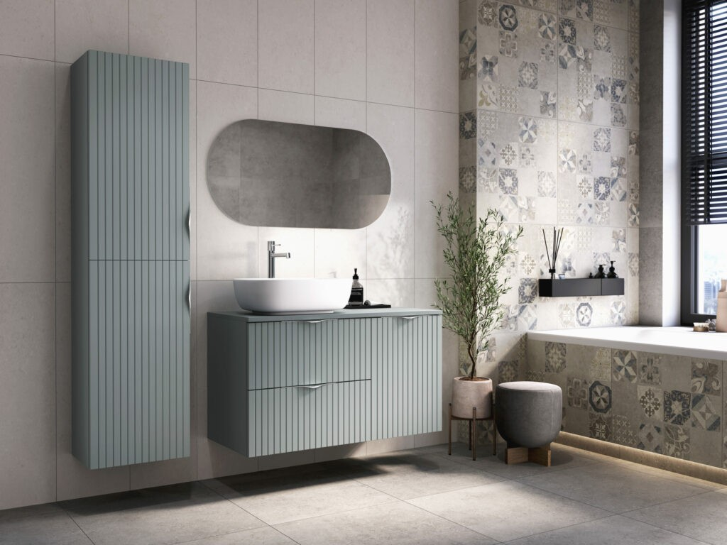 Setul complet de mobilier Cersanit Tirso, în nuanța fiord mat este compus dintr-un dulap suspendat cu lavoar 80 cm, dulap baie suspendat cu usa 40 cm și coloană spațioasă de 160 cm, acest set este ideal pentru organizarea eficientă a băii tale.
