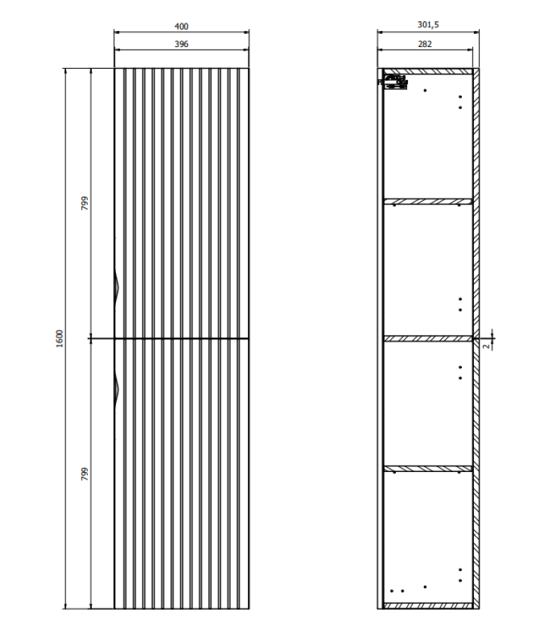 - Dimensiuni: 1600 x 400 x 301,5 mm