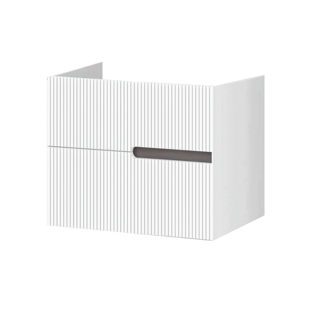 Mobilier suspendat Fluminia Malta 60 cm, finisaj riflat alb, cu 2 sertare SoftClose. Design modern, ideal pentru băi elegante și luminoase.