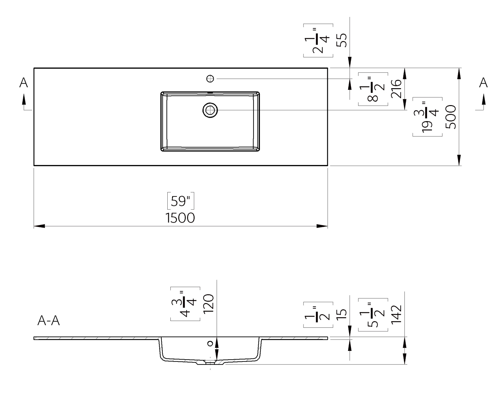 Dimensiunea generoasă de 1500 mm oferă un spațiu amplu pentru utilizare confortabilă și este ideală pentru mobilier de baie mare sau pentru băi spațioase. Lavoarul permite organizarea eficientă a zonei de spălare și oferă suficient spațiu pentru utilizare zilnică.