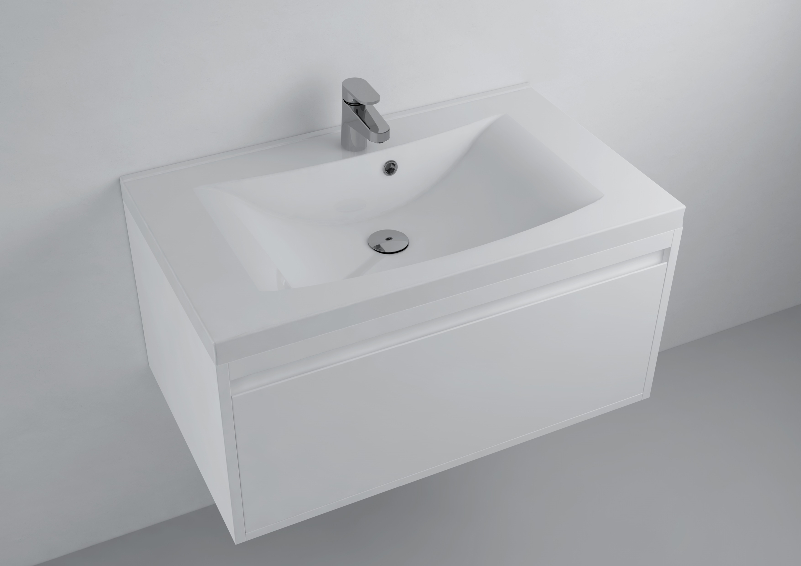 Materialul compozit este apreciat pentru rezistenta sa ridicata si pentru suprafata neteda care impiedica depunerea murdariei sau a calcarului. Finisajul alb lucios reflecta lumina si contribuie la crearea unui spatiu luminos si elegant. In acelasi timp, materialul este rezistent la umiditate si uzura, fiind potrivit pentru utilizarea zilnica.