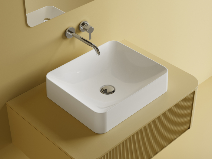 Lavoarul pe blat Foglia realizat din compozit este conceput pentru amenajari de baie moderne in care designul minimalist si functionalitatea sunt esentiale. Forma dreptunghiulara si liniile bine definite creeaza un aspect contemporan si elegant, potrivit pentru mobilier de baie modern sau pentru blaturi realizate din piatra, compozit sau lemn tratat.