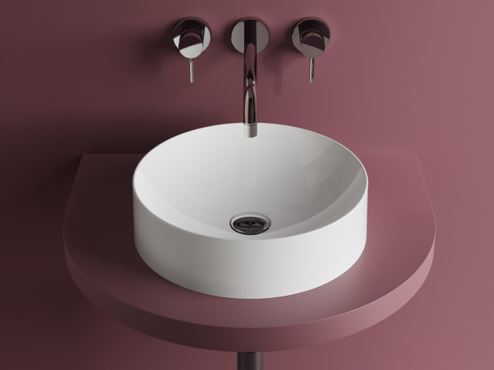 Lavoarul pe blat Foglia realizat din compozit este conceput pentru amenajari de baie moderne in care designul si functionalitatea sunt perfect echilibrate. Forma rotunda si liniile fluide creeaza un aspect elegant si contemporan, potrivit pentru mobilier de baie modern sau pentru blaturi realizate din piatra, compozit sau lemn tratat.