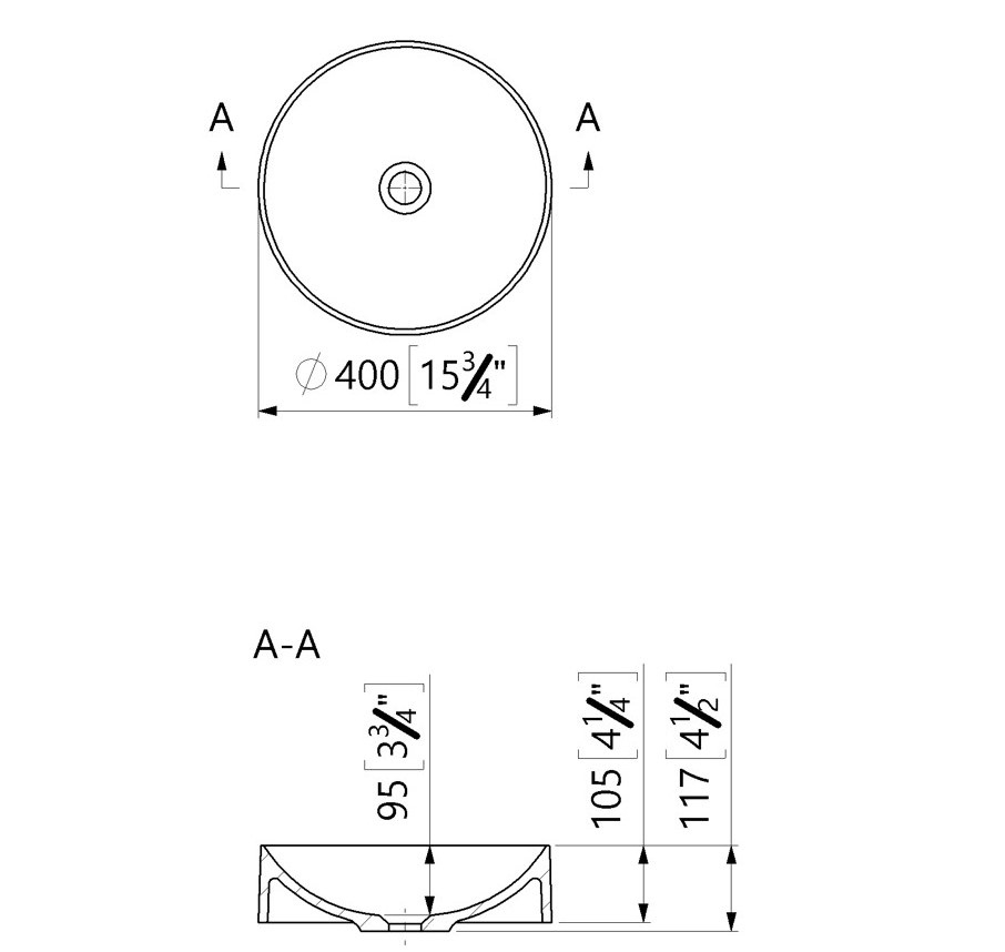 Dimensiunile de 400 x 400 mm si inaltimea de 117 mm ofera un spatiu confortabil pentru utilizare si permit integrarea lavoarului in mobilier de baie de dimensiuni medii. Forma rotunda adauga un plus de eleganta si fluiditate in designul baii, fiind potrivita pentru amenajari moderne sau minimaliste.