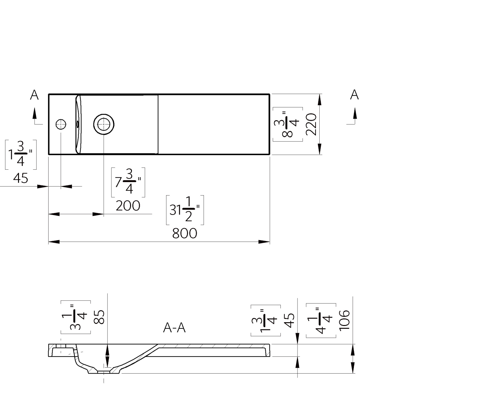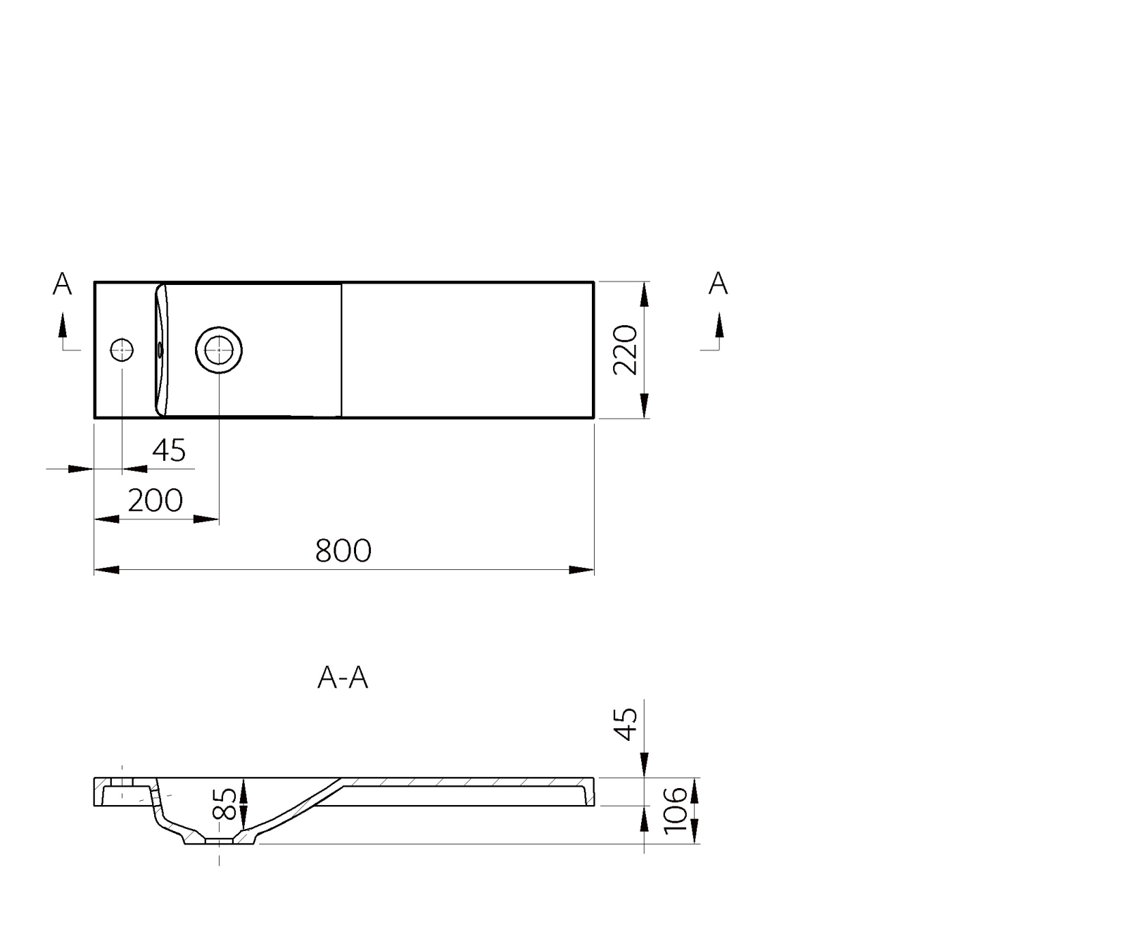 Dimensiunile de 800 x 220 mm și înălțimea de 106 mm fac acest lavoar potrivit pentru băi mici, grupuri sanitare sau spații unde este necesar un lavoar compact și funcțional.