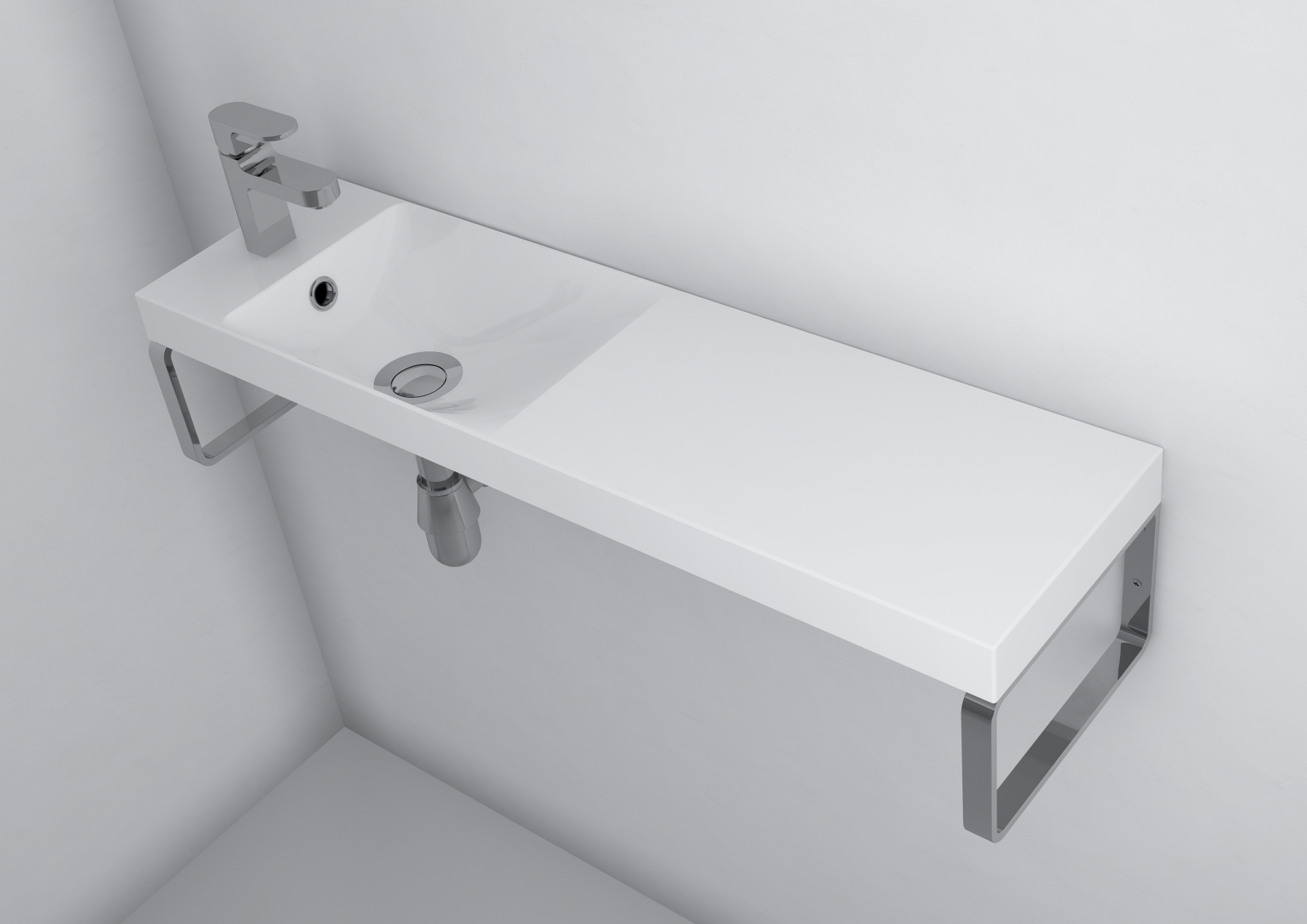 Materialul compozit este apreciat pentru rezistența sa ridicată și pentru suprafața netedă care împiedică depunerea murdăriei sau a calcarului. Finisajul alb lucios reflectă lumina și contribuie la crearea unui spațiu luminos și elegant, fiind potrivit pentru utilizarea zilnică.