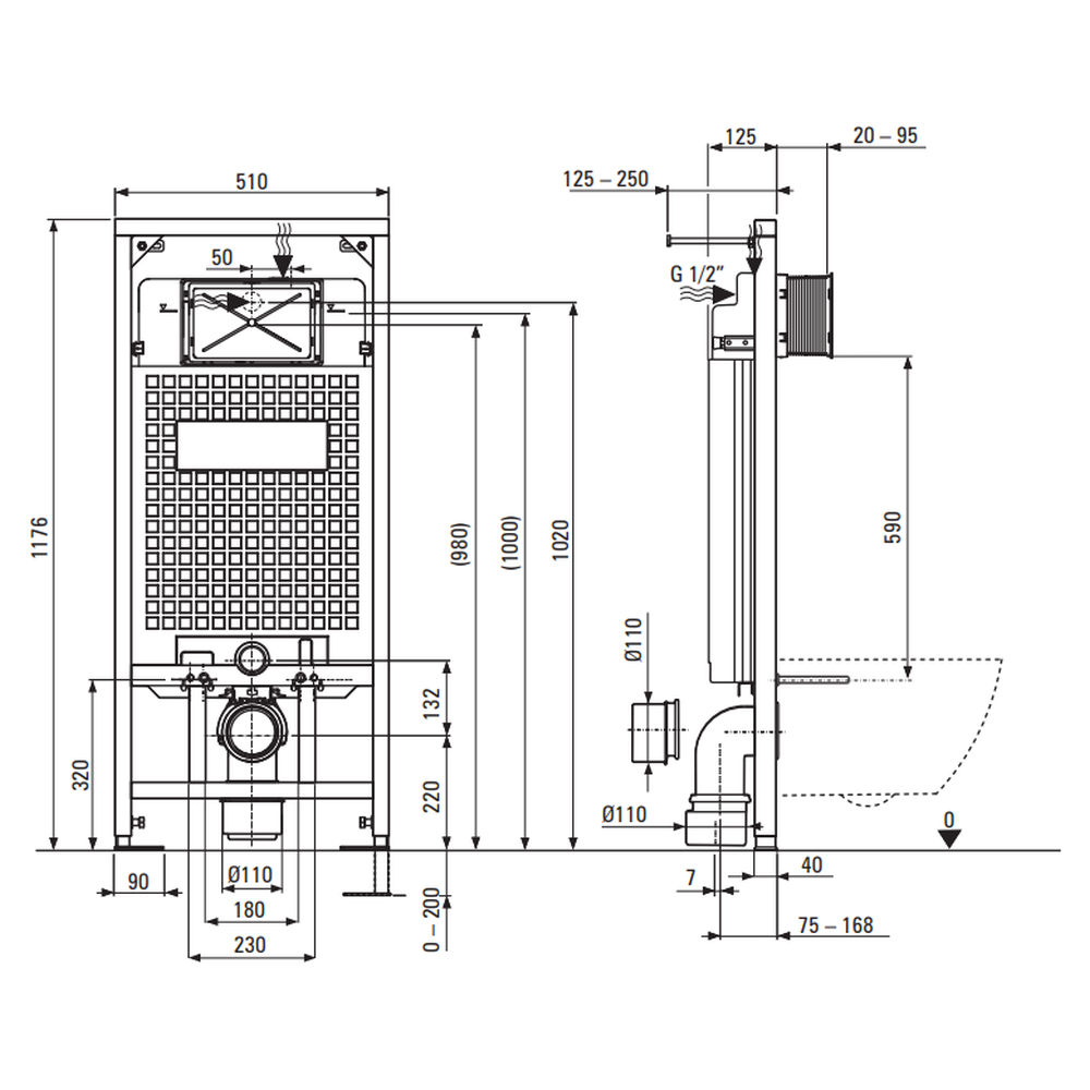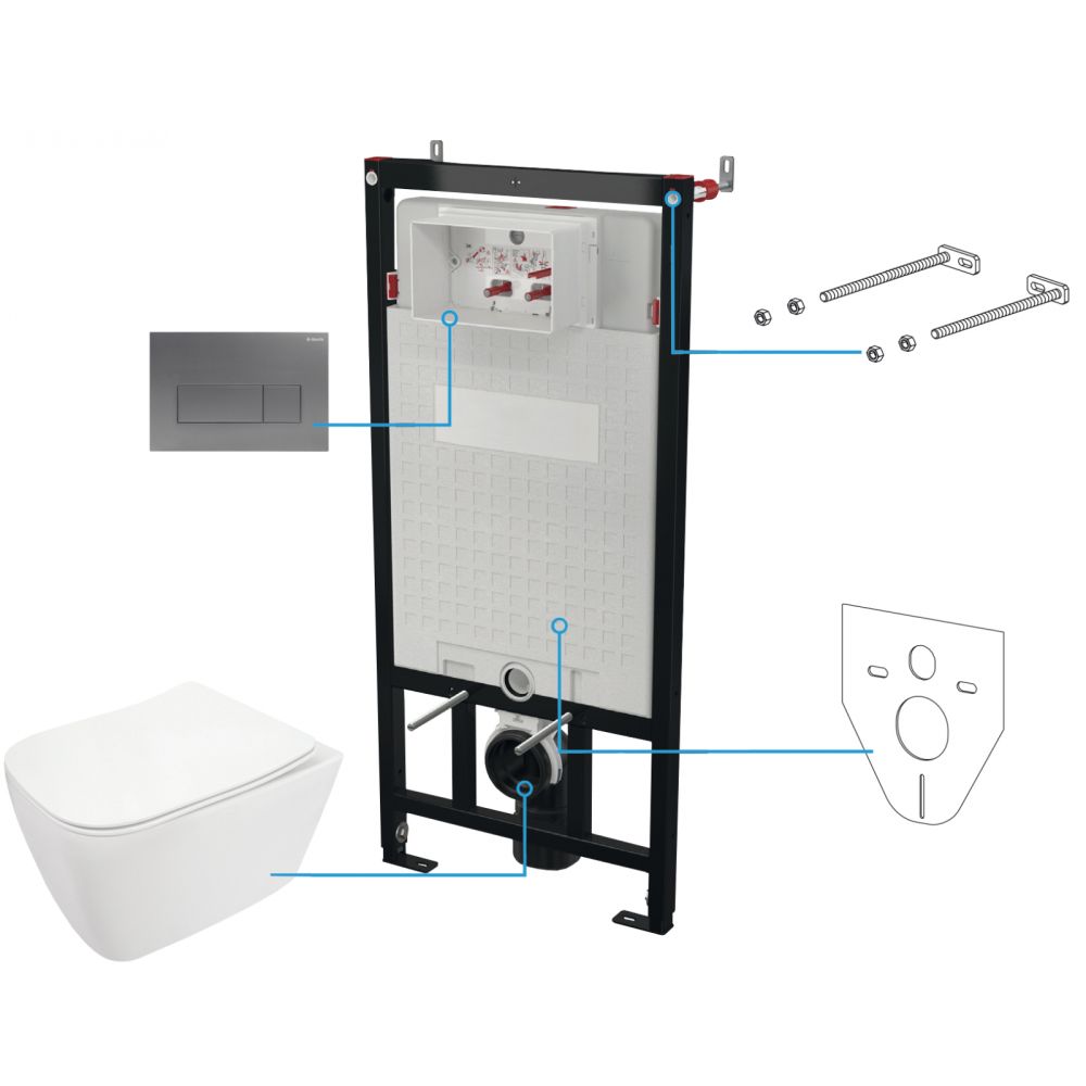 Set vas wc rimless cu capac soft close, rezervor incastrat, clapeta de actionare titan si izolare fonica Deante Hiacynt New