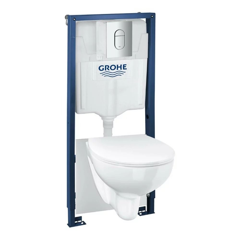 Set vas wc suspendat rimless cu capac Grohe Bau Ceramic, rezervor incastrat Rapid SL si clapeta crom