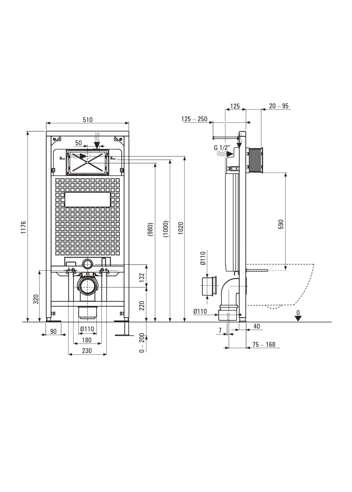 Cadrul de instalare este proiectat pentru a fi montat pe perete, având o capacitate a rezervorului de 9 litri. Sistemul de evacuare dublă (3/6 litri) permite un consum eficient de apă. Umplerea și evacuarea sunt silențioase. Capacul WC este de tip "delicat" și are un sistem de închidere lentă (soft-close), care previne zgomotele și deteriorarea.