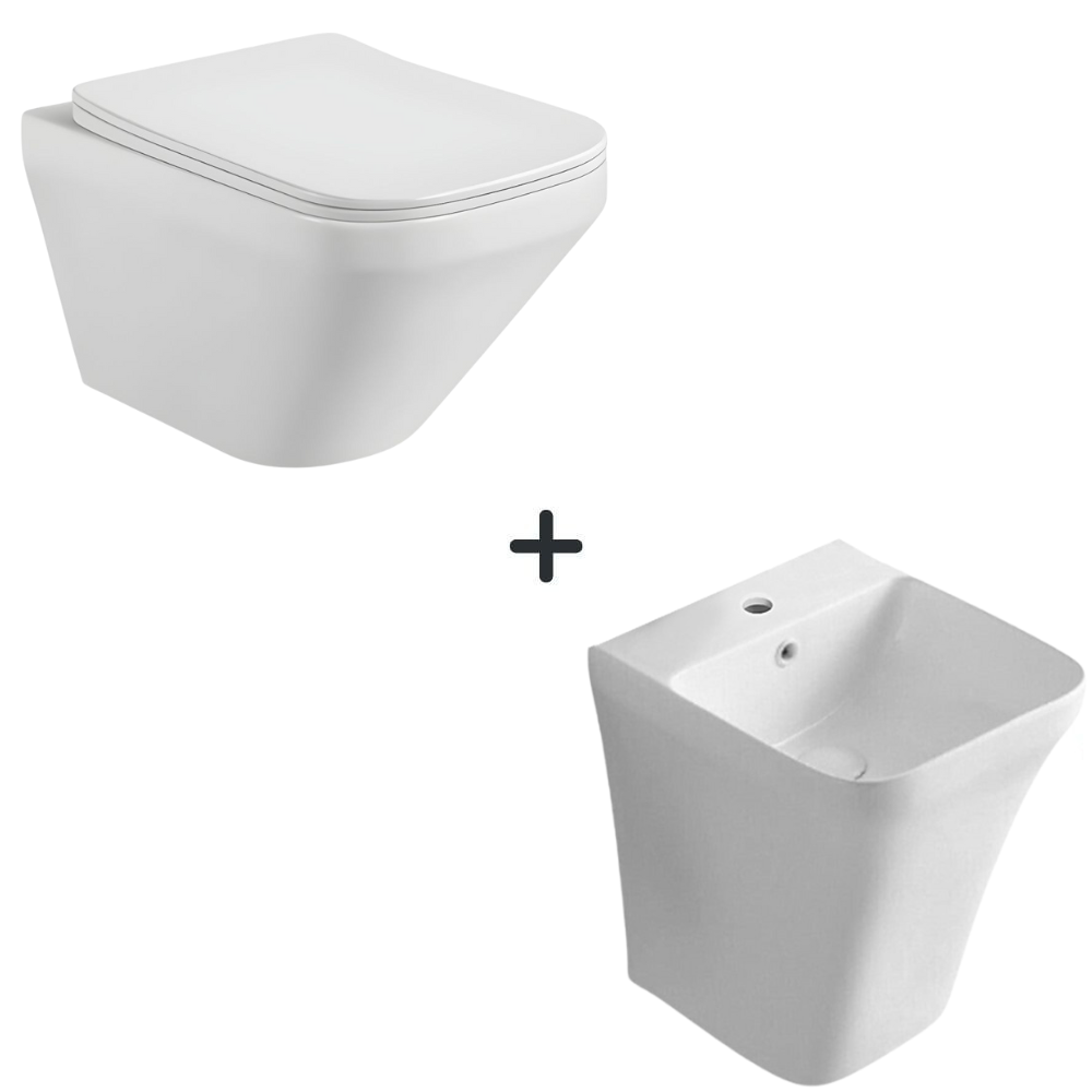 Set vas wc rimless suspendat, dreptunghiular, capac slim softclose, Foglia Bristol