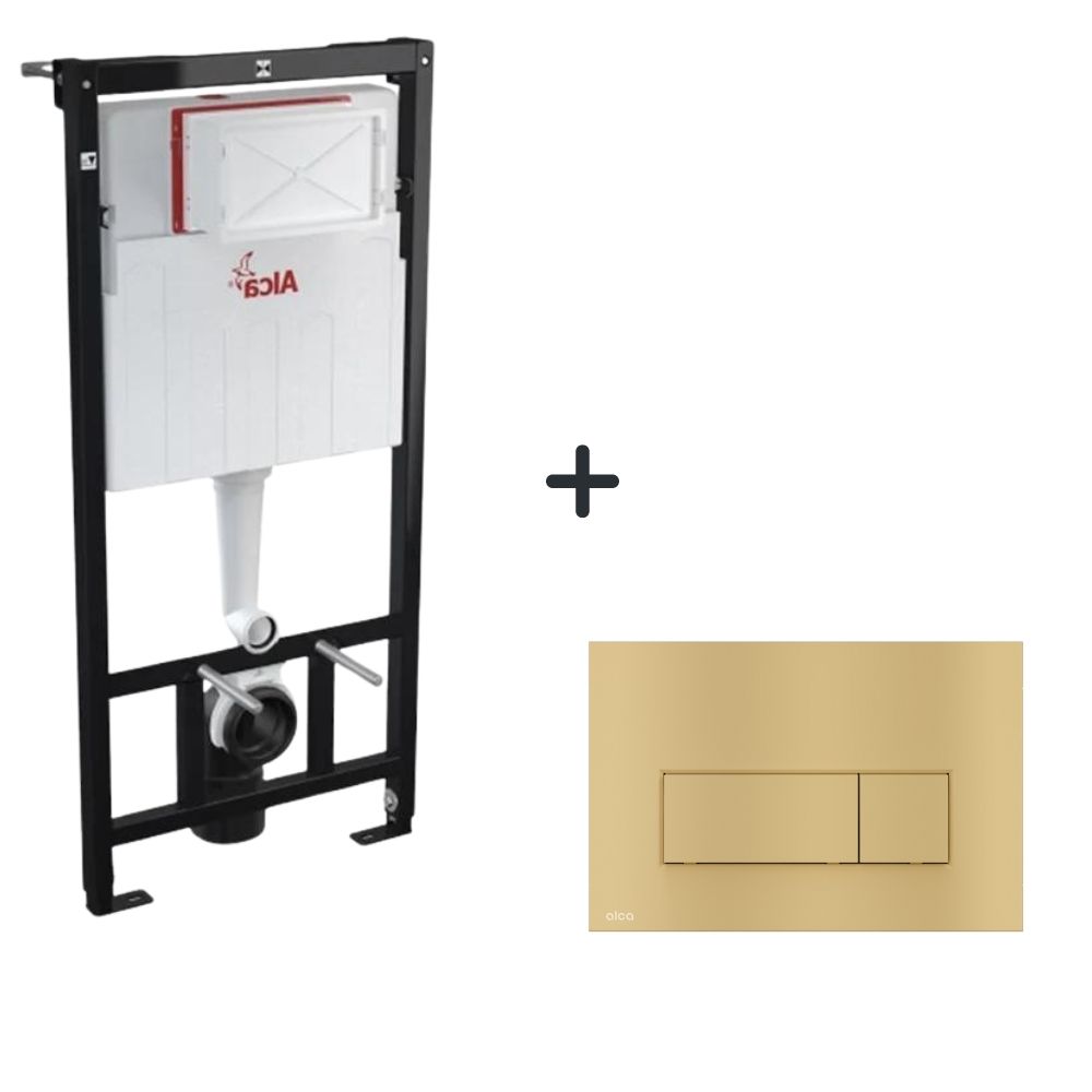 Acest set este compus din cadrul WC suspendat cu rezervor încastrat Alcaplast Sadromodul și clapeta de acționare Thin Alcadrain, auriu mat, este soluția perfectă pentru băile moderne.