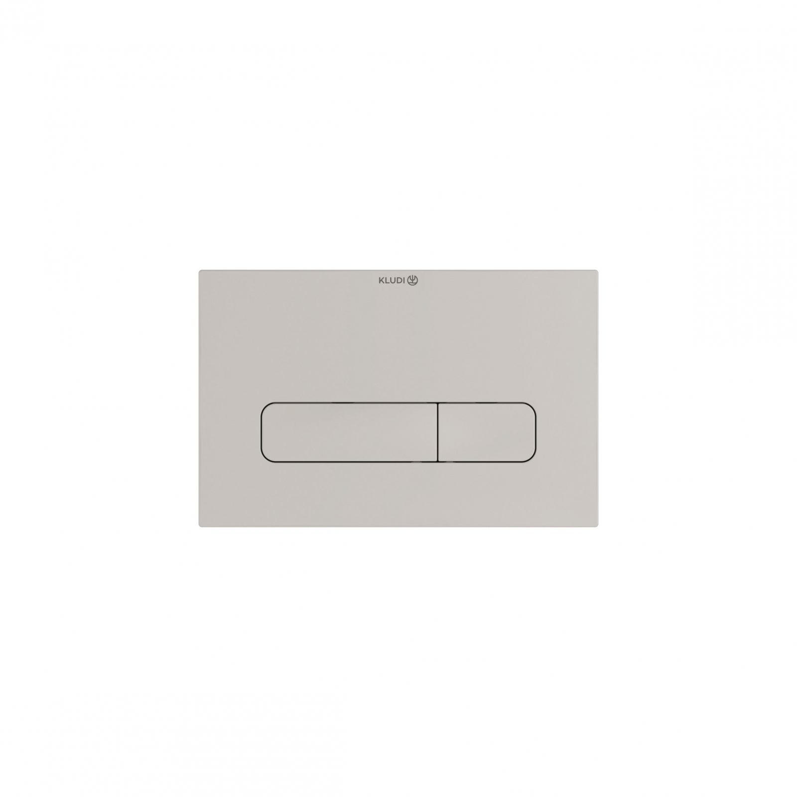Plăcuța de acționare Kludi Unifix de tip "Control de spălare" este concepută pentru sistemele WC suspendate cu rezervor încastrat. Finisajul gri nisipiu mat (o nuanță subtilă de gri cu tentă caldă) oferă un aspect elegant și modern ce se integrează discret în baie. Este operată din față și permite două tipuri de spălare, contribuind la eficiența consumului de apă (Dual Flush).