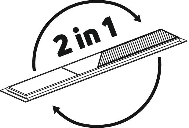 Caracteristica sa reversibilă permite montajul în două moduri: cu grila din oțel auriu la vedere sau cu inserția pentru faianță, oferind astfel posibilitatea de a integra scurgerea discret în designul pardoselii.