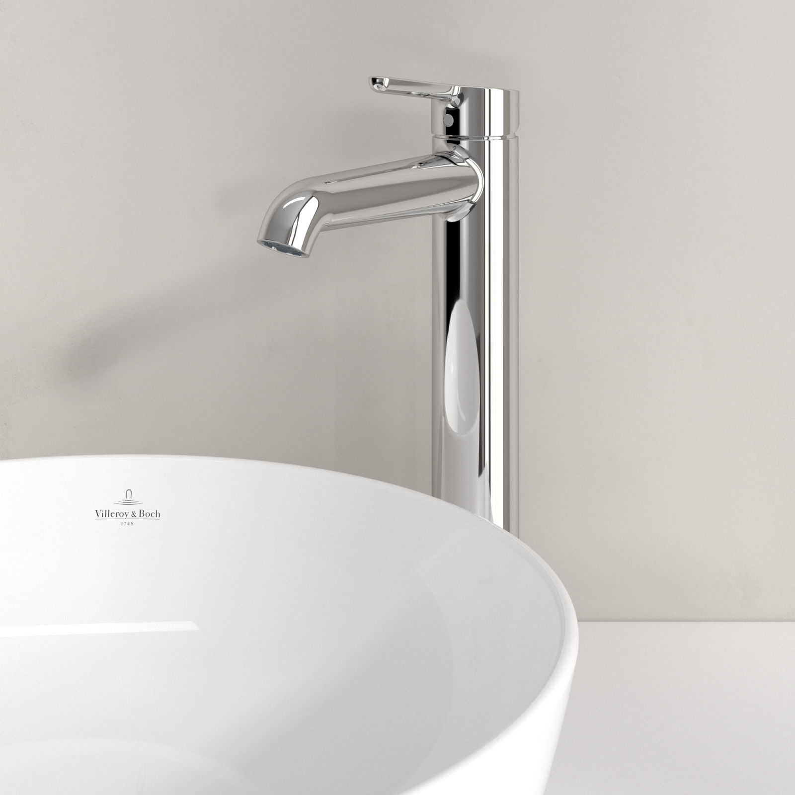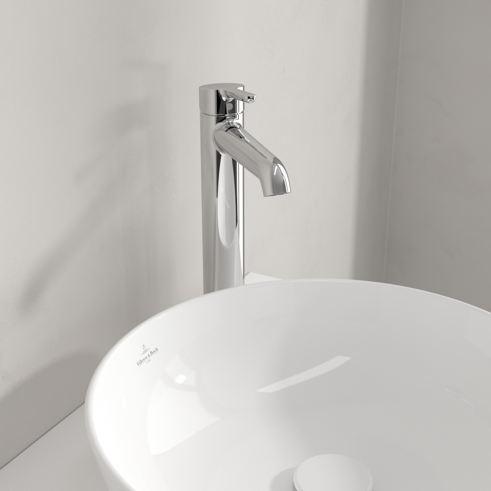Bateria înaltă pentru lavoar din colecția Skyla de la Villeroy & Boch este o alegere echilibrată pentru băile contemporane, unde designul modern și funcționalitatea trebuie să coexiste fără compromisuri.