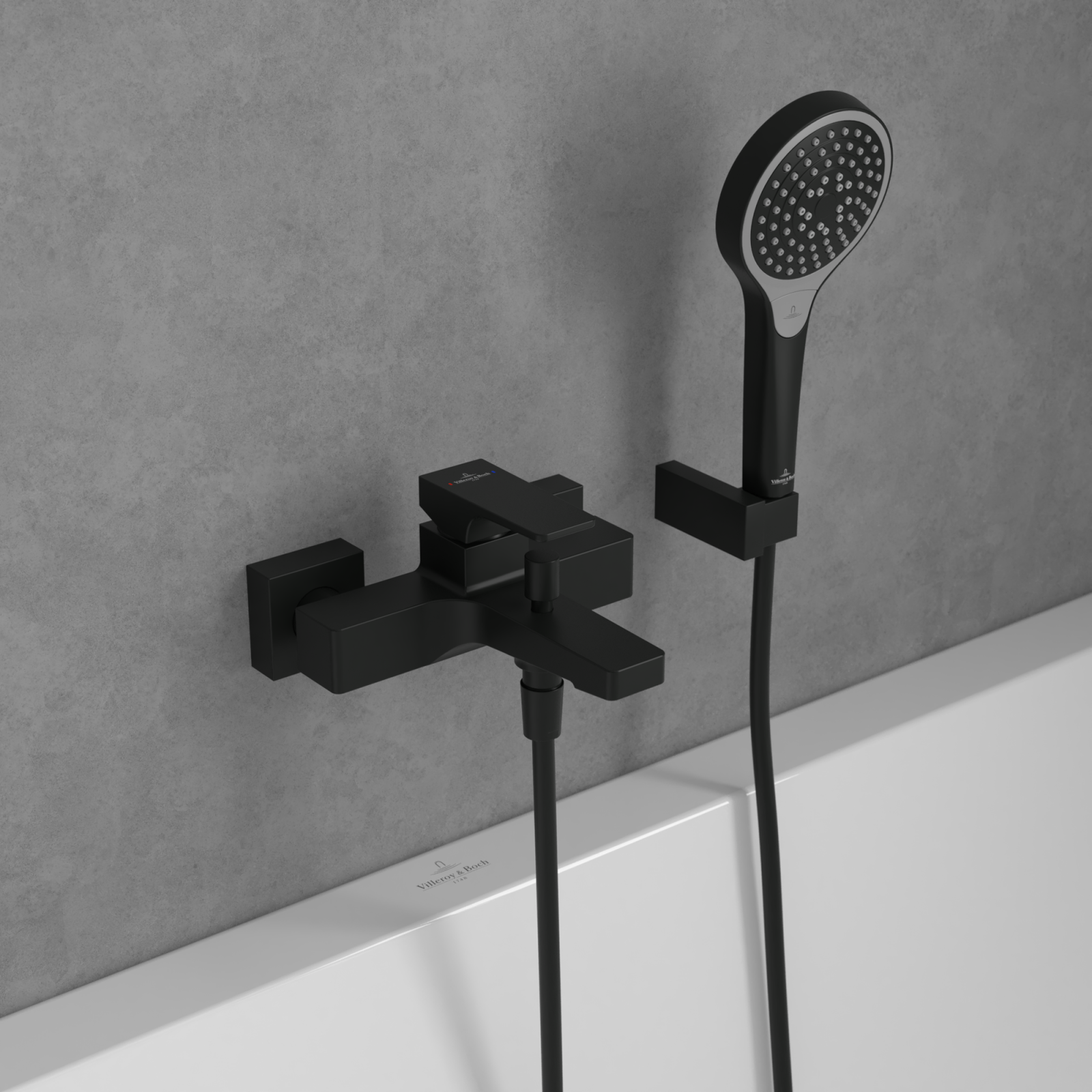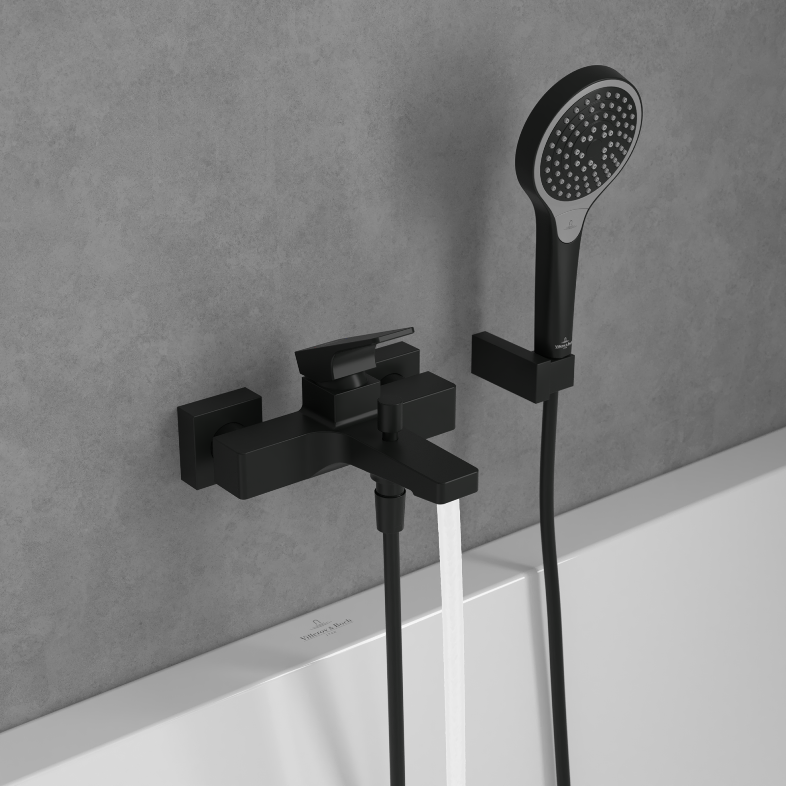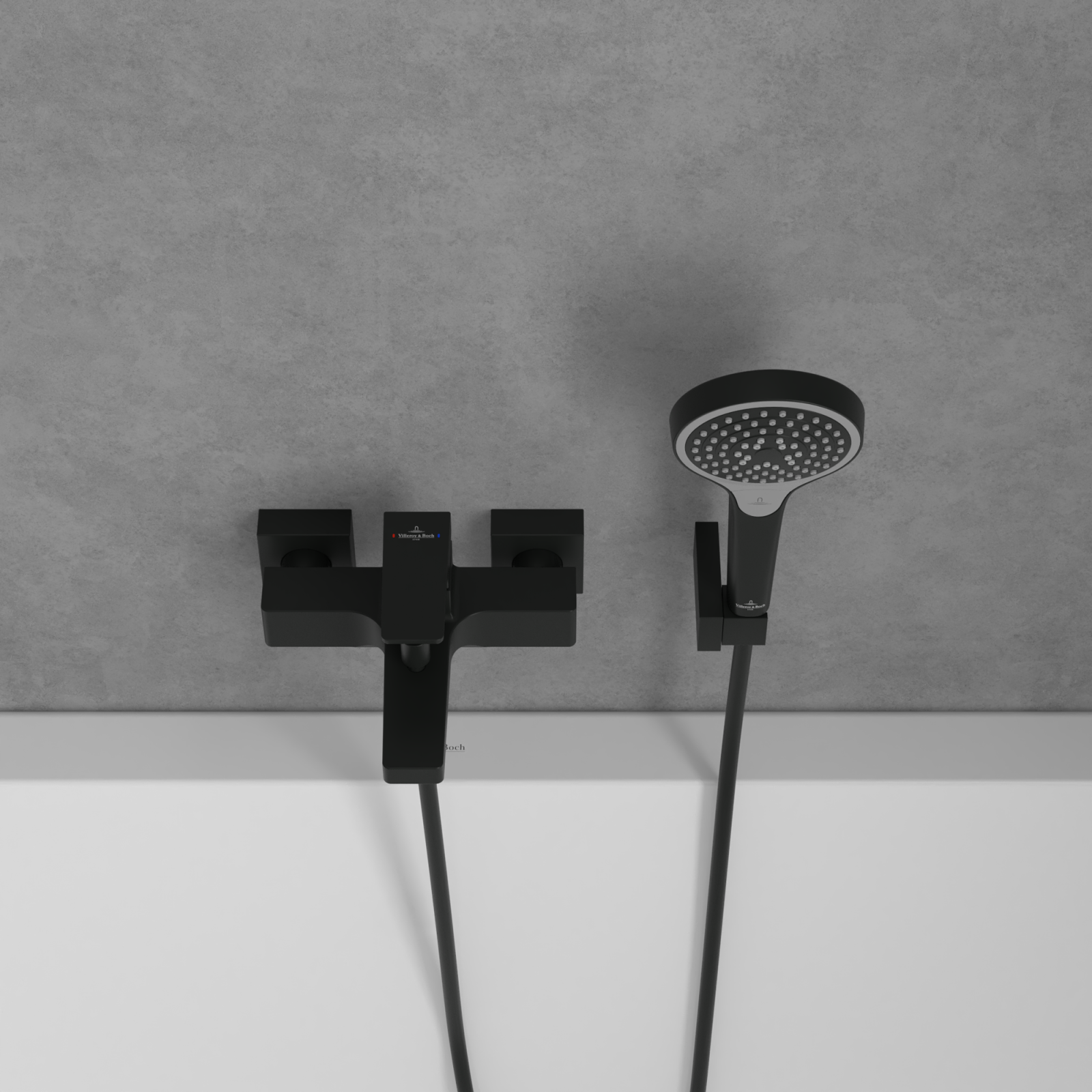 Bateria cadă-duș din colecția Architectura Square de la Villeroy & Boch este o alegere echilibrată pentru băile moderne, unde designul clar și funcționalitatea trebuie să fie impecabile.
