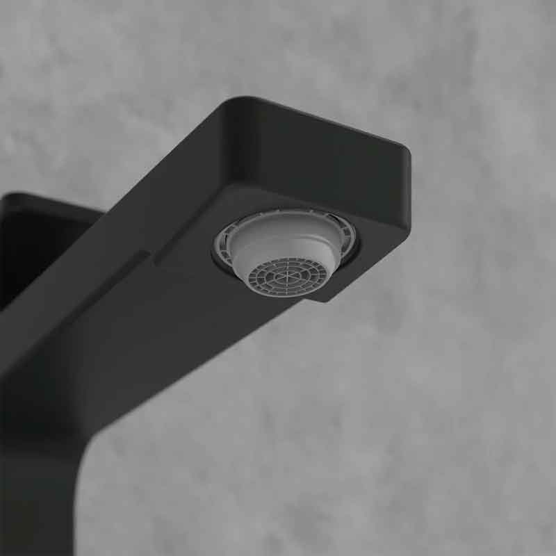 Designul geometric, cu linii drepte și precise, este completat de finisajul negru mat – o alegere actuală în amenajările contemporane, care adaugă contrast și eleganță spațiului de baie.