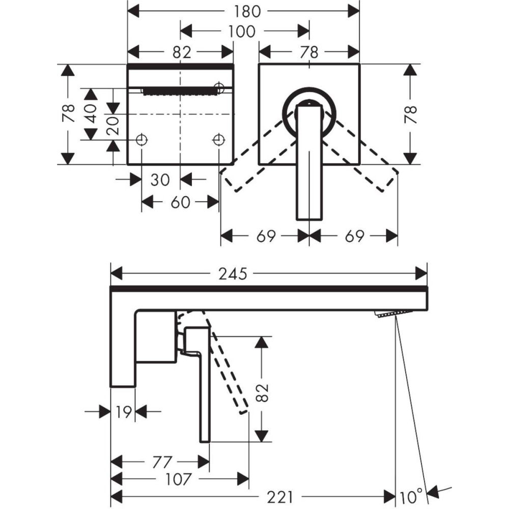 Descriere baterie lavoar incastrata crom/sticla neagra Hansgrohe Axor MyEdition 70