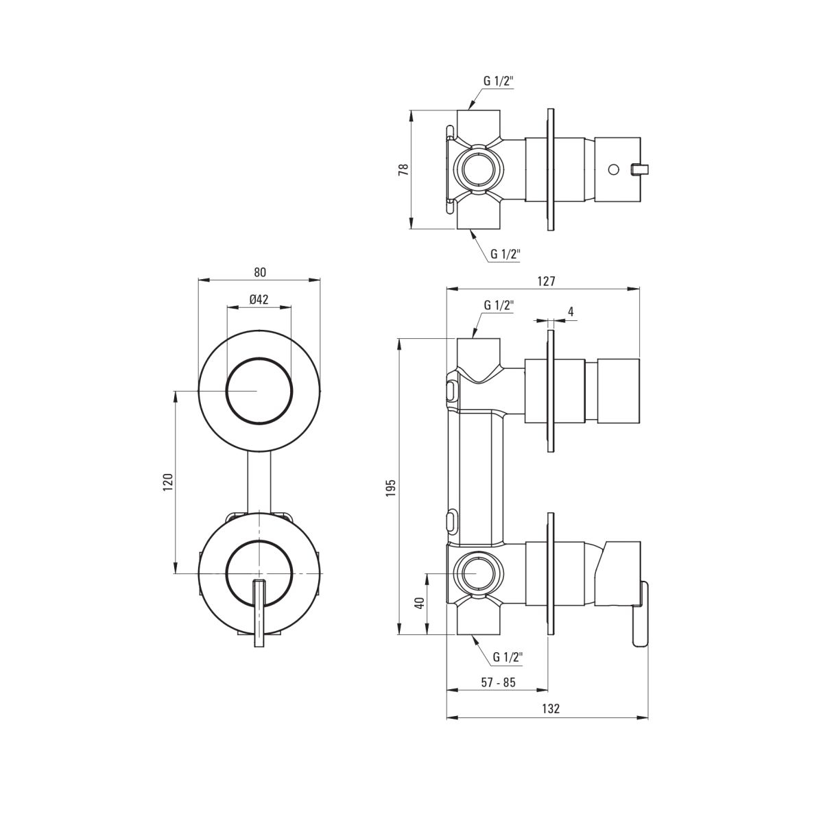 Această baterie monocomandă este echipată cu un cartuș ceramic de 35 mm, asigurând un control precis și fiabil al temperaturii și debitului apei. Caracteristica sa distinctivă este comutatorul mecanic cu activare prin apăsare, care permite trecerea facilă între diferitele funcții ale dușului (ex: pară de duș și duș de tavan).