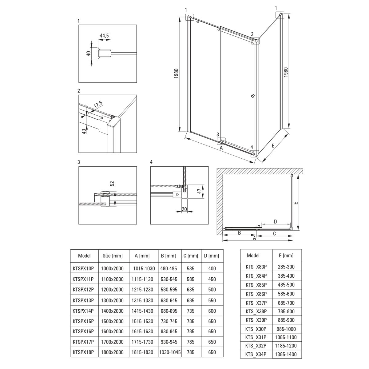 Funcționalitatea este îmbunătățită de prezența barelor de rigidizare reglabilă a cabinei cu o lungime de 1200 mm, care contribuie la stabilitatea întregii structuri. Cabina include, de asemenea, suporturi cu siguranță, iar elementele de montaj sunt mascate pentru un aspect curat și minimalist. Pentru o instalare fără probleme, profilele compensează curbura pereților.