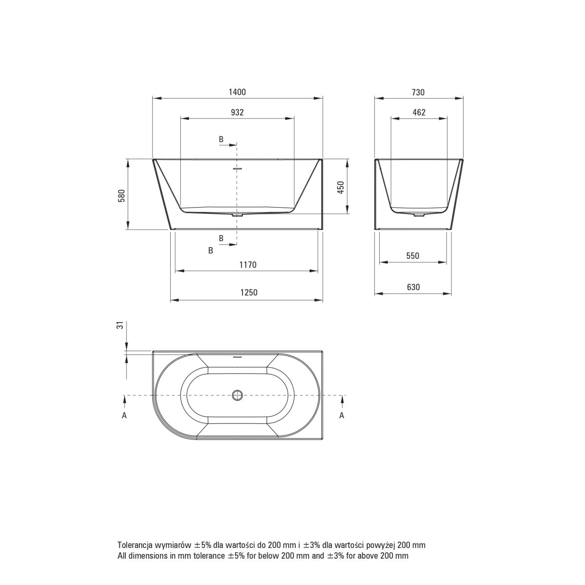 Cada are dimensiunile de 1400 mm (lungime) x 730 mm (lățime) x 580 mm (înălțime), oferind un spațiu confortabil pentru a te bucura de o baie relaxantă. Adâncimea este de 450 mm.