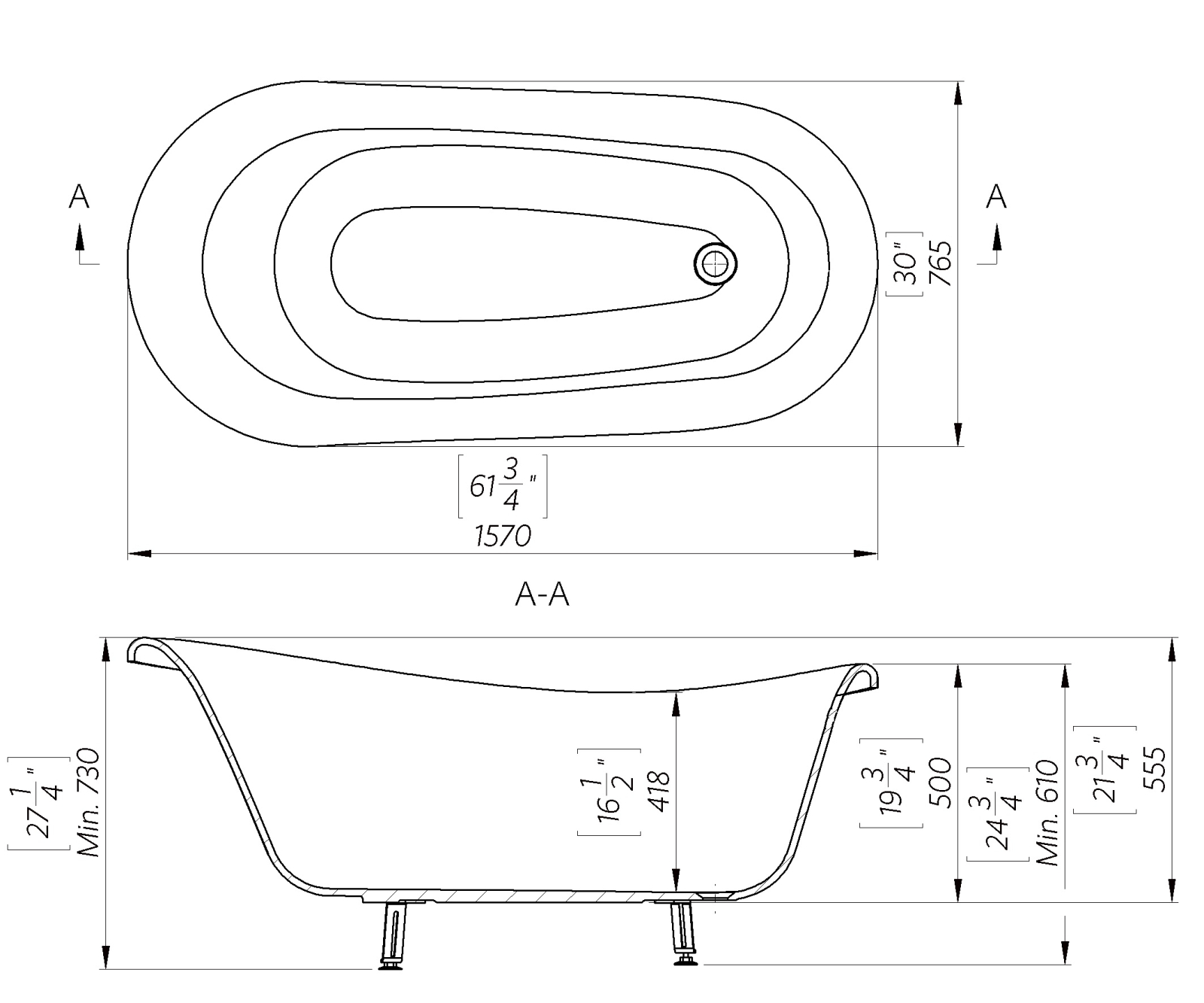 Dimensiunile de 1570 x 720 x 665 mm sunt ideale pentru spații medii, oferind un suport ergonomic excelent datorită spătarului înălțat. Montajul independent pe picioare decorative evidențiază linia sculpturală a produsului, adăugând un plus de valoare estetică și transformând cada într-o piesă centrală de design interior.