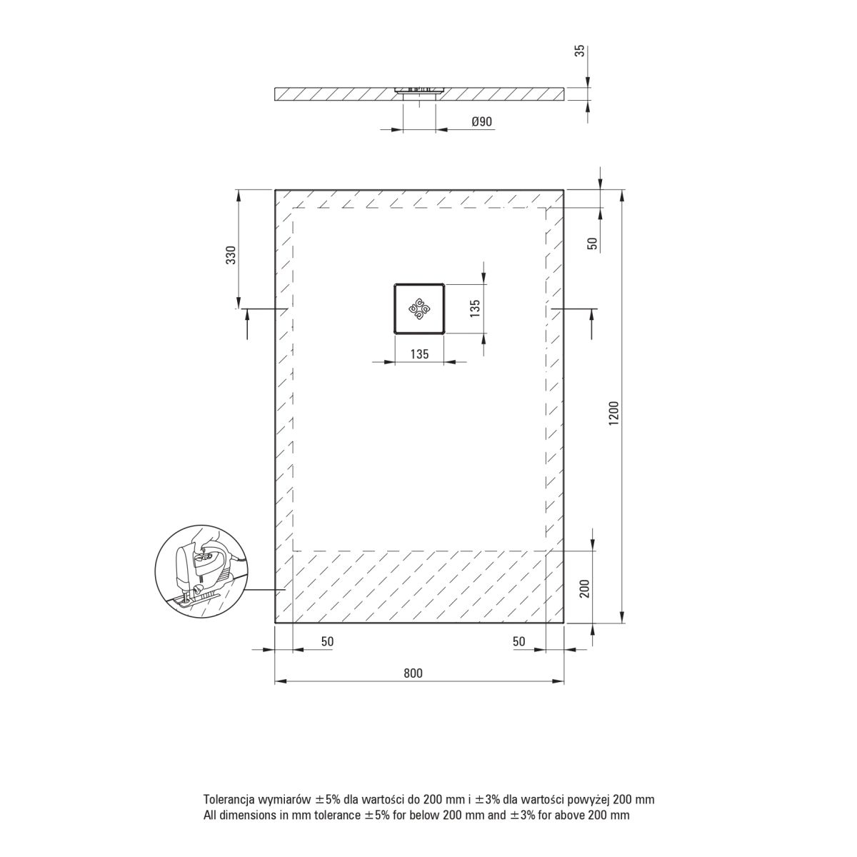Cădița de duș dreptunghiulară Deante Silia de 120x80 cm este o soluție modernă și elegantă, perfectă pentru a optimiza spațiul din baie. Cu o înălțime de numai 3.5 cm, cădița are un profil slim care permite montarea la nivelul pardoselii, oferind un aspect minimalist și un acces facil.