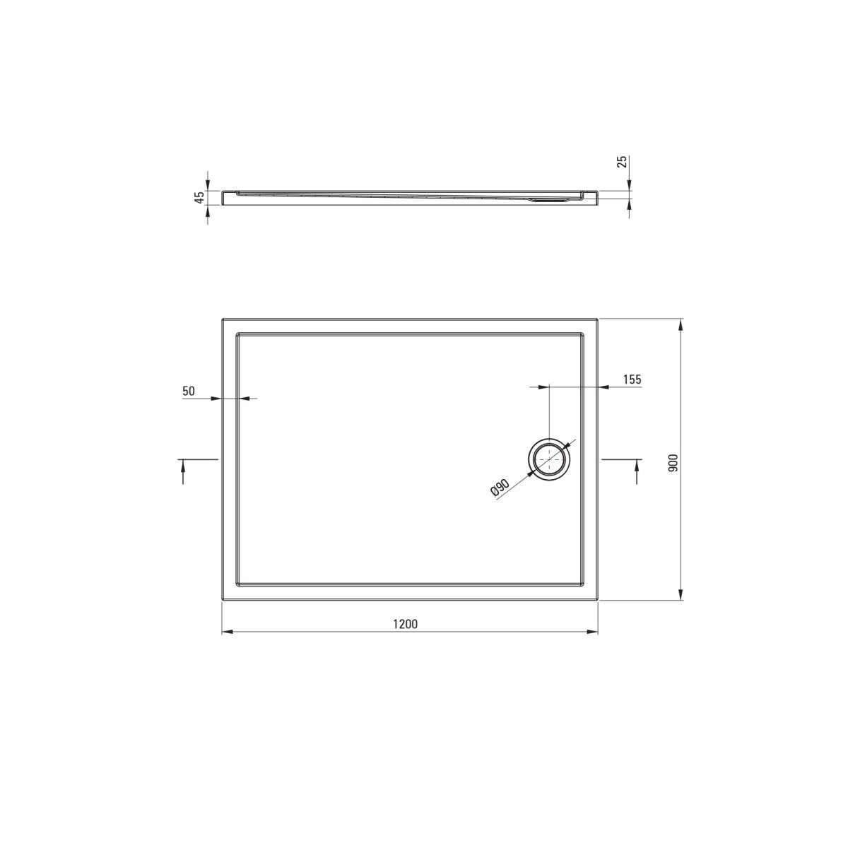 Cu dimensiuni generoase de 120x90 cm și o înălțime de 4.5 cm, această cădiță dreptunghiulară oferă un spațiu vast și confortabil pentru duș. Poate fi instalată pe un suport, asigurând o înălțime optimă pentru acces și o estetică echilibrată. Dimensiunile sale o fac ideală pentru băile care permit o zonă de duș extinsă.