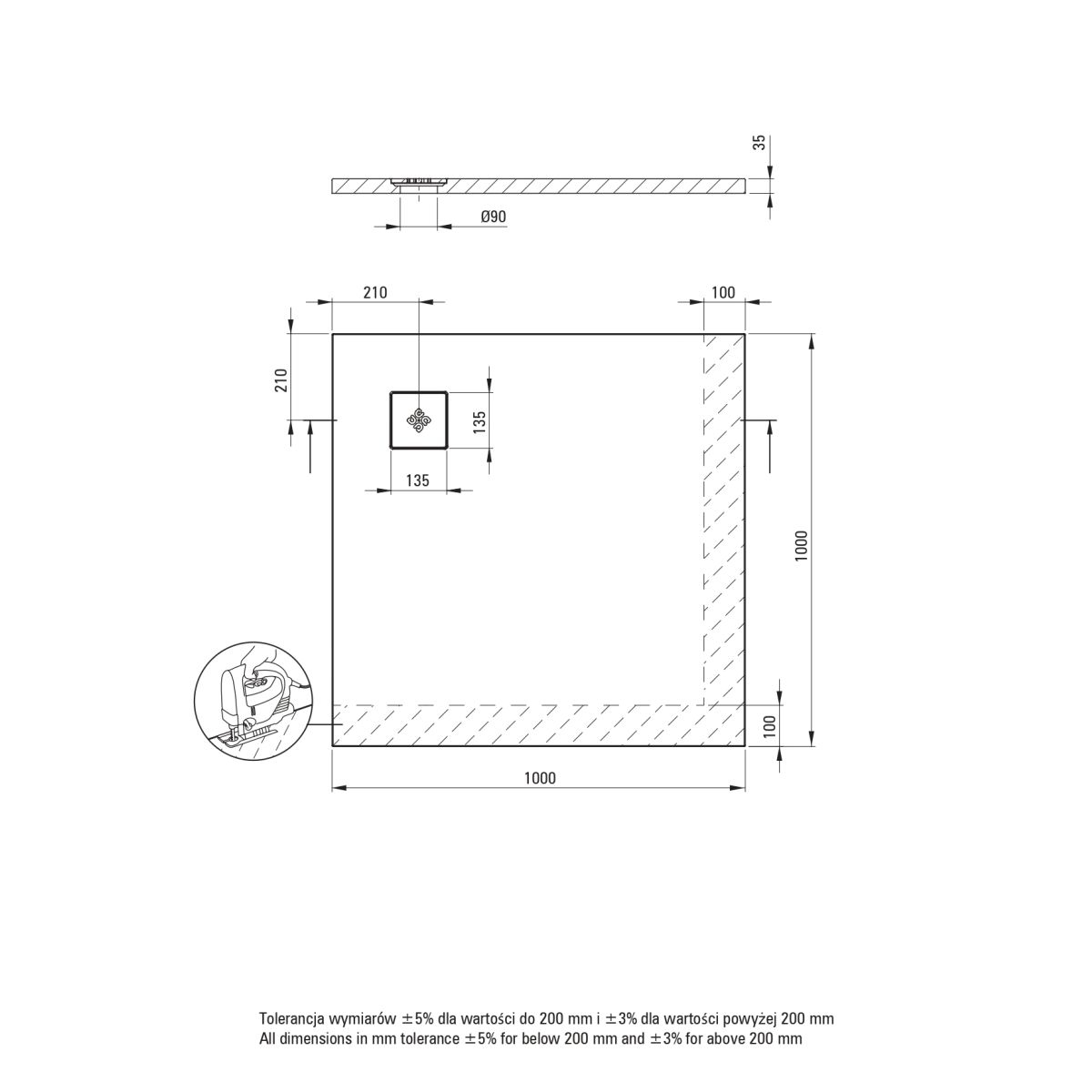 Dimensiuni: 1000 x 1000 x 35 mm.