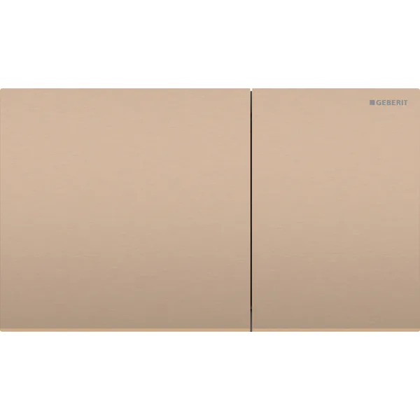 Această placă de acționare pentru rezervorul încastrat face parte din seria Sigma70 de la Geberit și este proiectată special pentru spălare în două trepte (dual‑flush). Finită elegant în aur roșu periat, plăcuța este confecționată din oțel inoxidabil tratat easy‑to‑clean, rezistent la zgârieturi și amprente.