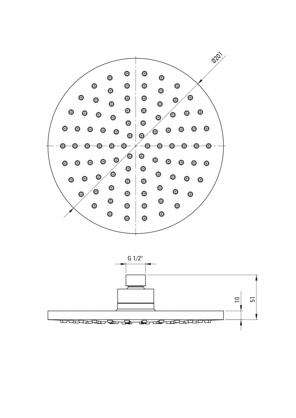 Pălărie de duș Deante Boro, 201 mm, rotundă, cromată