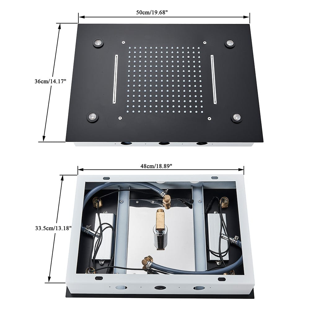 Duș încastrat în tavan, negru, 2 funcții - Cascadă și ploaie pentru o experiență de lux
