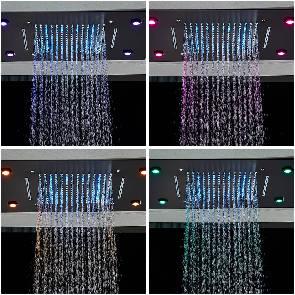 CasaVie Para de dus neagra incastrata in tavan, cu doua functii de curgere si iluminare LED