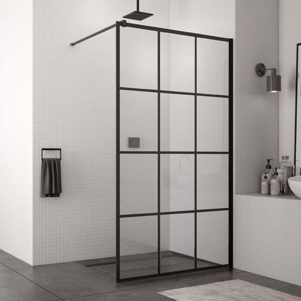 Pachet complet paravan dus walk-in cu rigola negru mat Alcadrain
