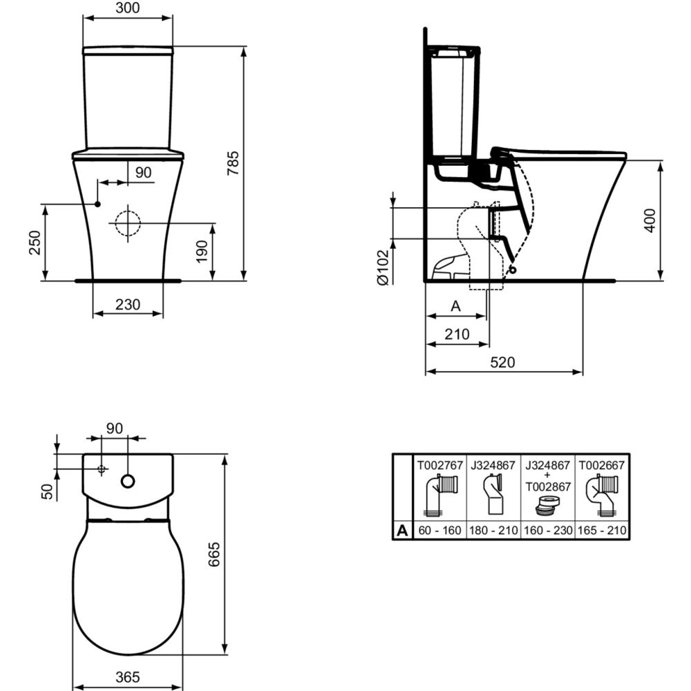 Descriere rezervor vas wc Ideal Standard Connect Air Arc alb lucios cu alimentare laterala