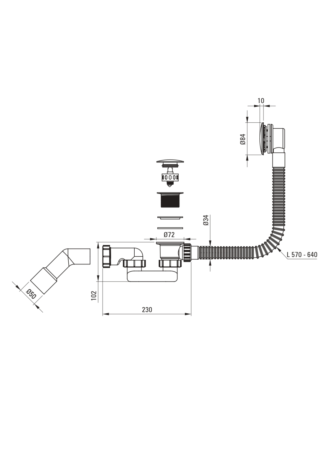 Sistemul click-clack permite închiderea și deschiderea scurgerii prin simpla apăsare a dopului. Sifonul este de tipul cu preaplin, o funcție esențială care previne revărsarea accidentală a apei din cadă, oferind un plus de siguranță.