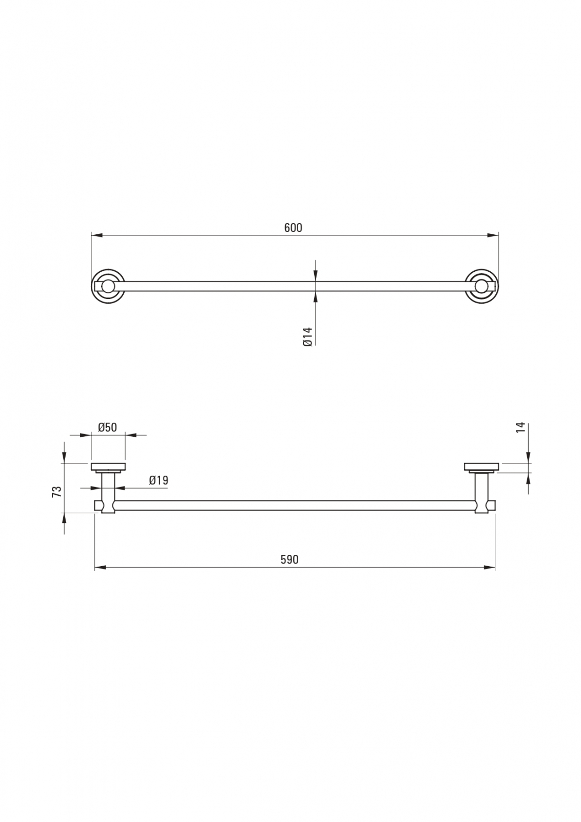 Cu o adâncime de 73 mm, o lățime de 600 mm și o înălțime de 50 mm, suportul are un design compact și se montează pe perete.