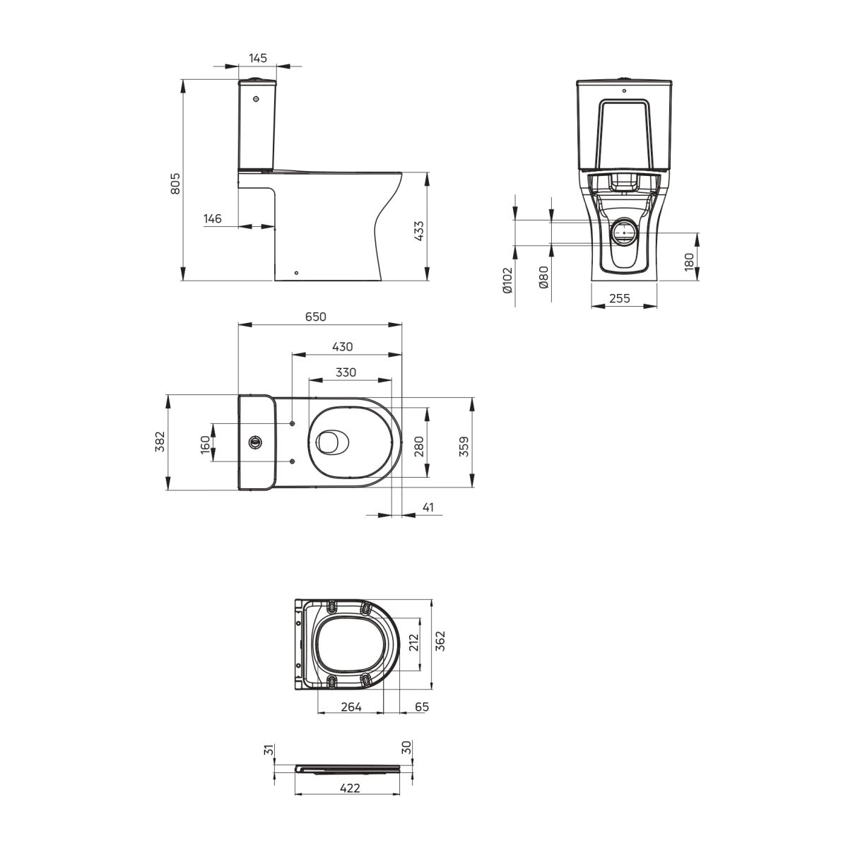 Montajul este de tip de sine stătător, iar kitul de montare este inclus, simplificând procesul de instalare. Cu o lățime de 382 mm și o lungime de 650 mm, acest vas WC compact se integrează perfect în spații mai mici, oferind în același timp un confort optim. Produsul beneficiază de o garanție de 10 ani, o dovadă a calității și durabilității sale.
