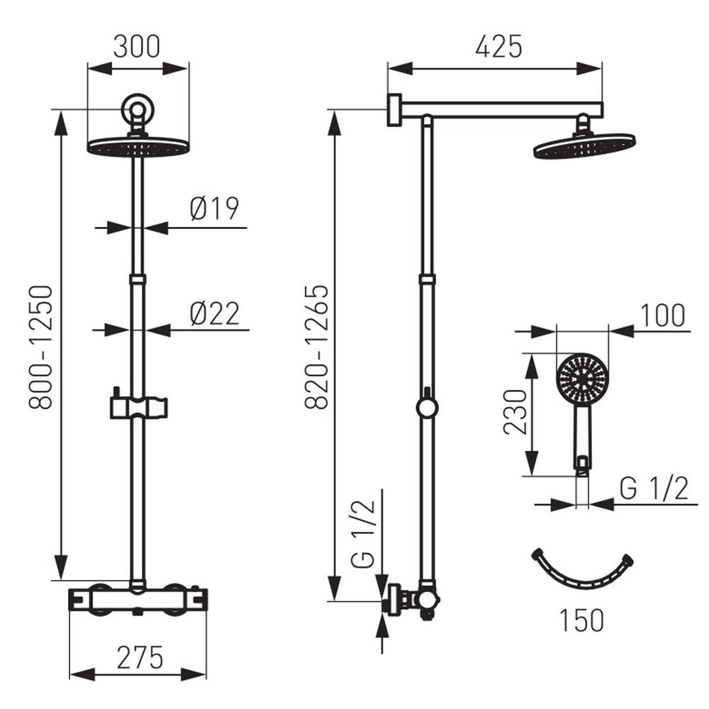 Coloana de dus FDesign Anima, baterie termostatata, negru mat