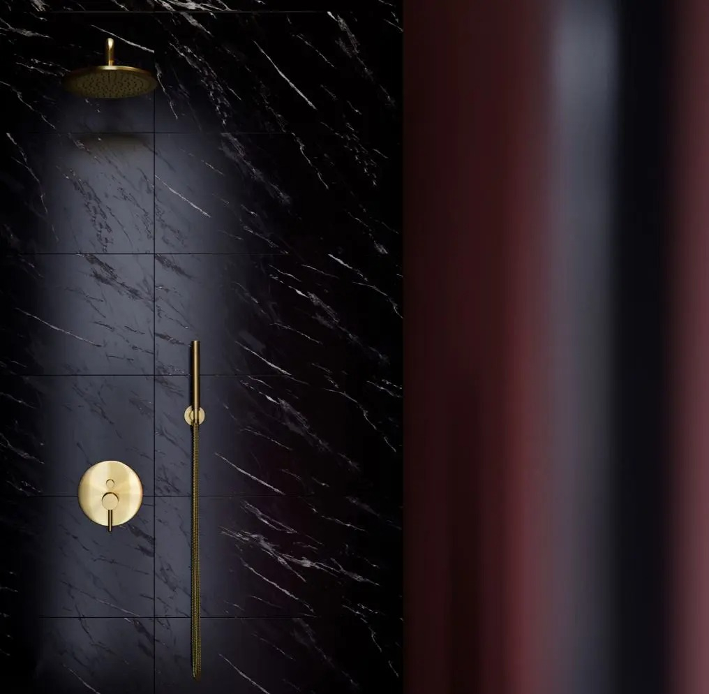 Setul Omnires Y – îmbină funcționalitatea completă a unui sistem de duș cu un design minimalist și rafinat. Finisajul auriu periat, aplicat prin tehnologie PVD, oferă o nuanță caldă, satinată, deosebită de clasicele cromuri și nișă cromatică exclusivistă.