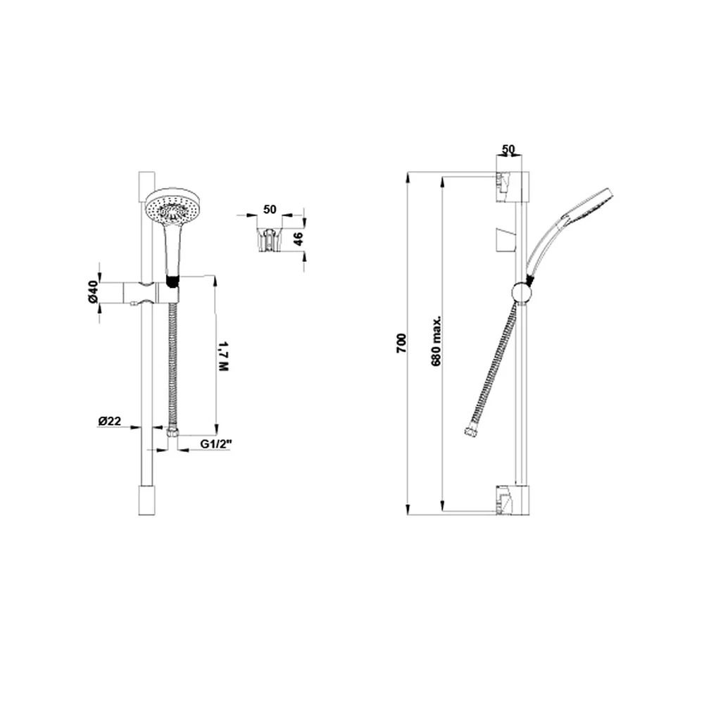 Descriere set de dus Gala cu bara, para dus o functie si furtun, crom lucios