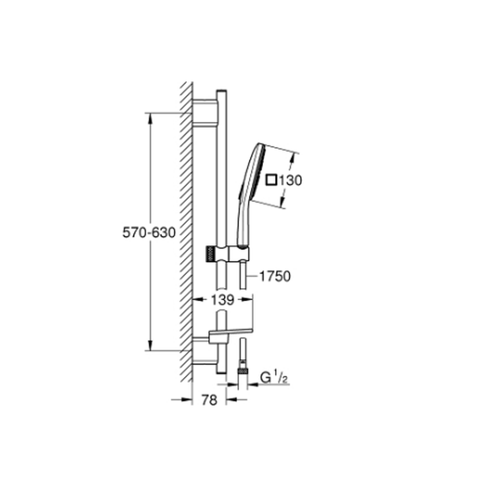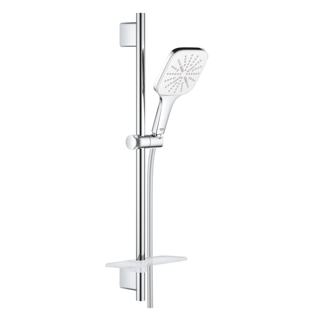 Specificatii tehnice Set dus crom cu bara, para dus patrata si furtun Grohe Rainshower Smartactive 130: