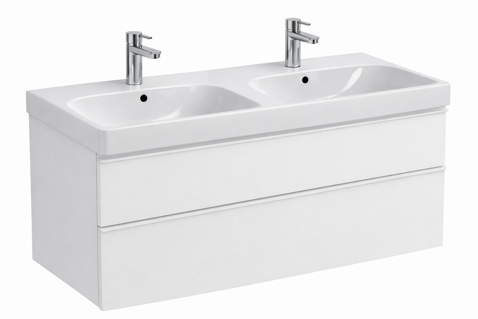 Lavoar baie dublu pe mobilier alb 120 cm Geberit Smyle Square