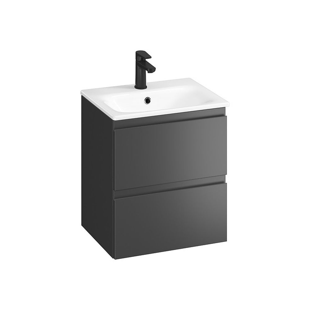 Cersanit Set dulap baie suspendat 2 sertare cu lavoar Cersanit Moduo inclus, 50 cm, antracit mat, B889, montat