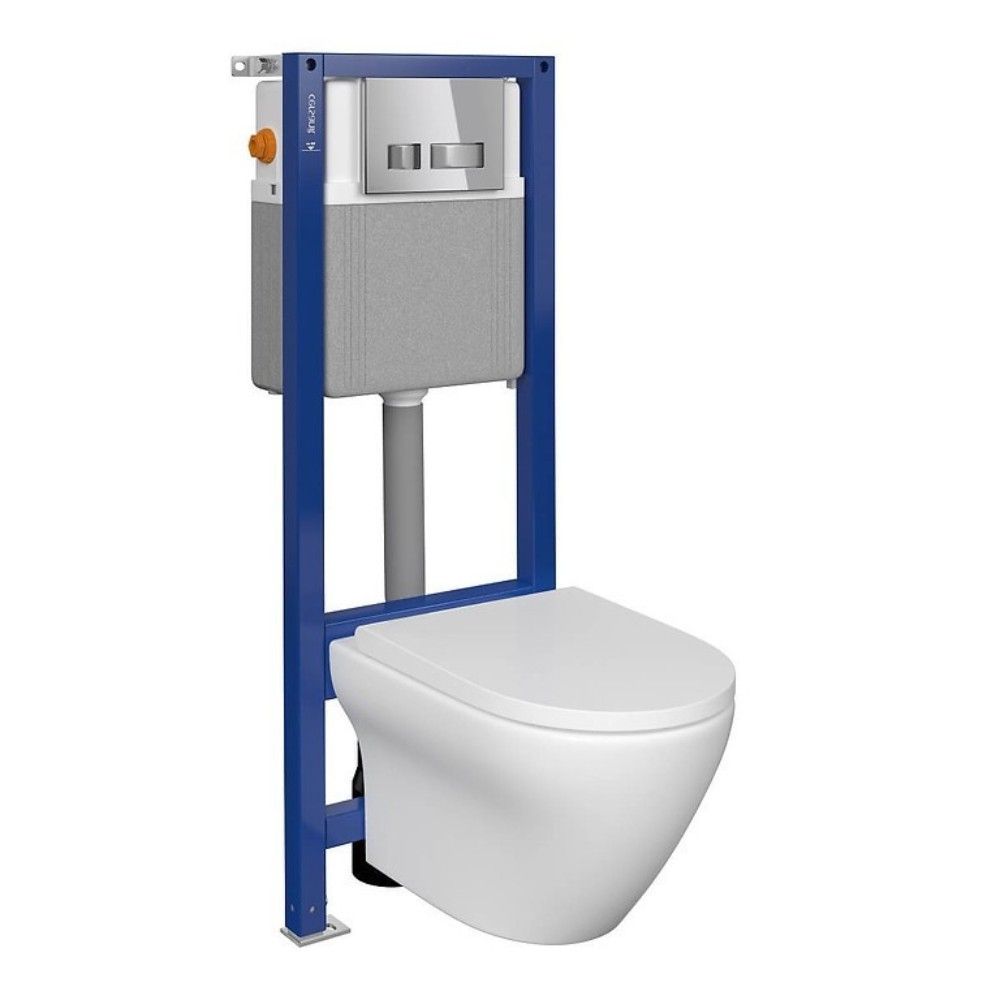 Set vas wc suspendat Larga Oval CleanOn cu capac soft close, rezervor incastrat si clapeta crom lucios