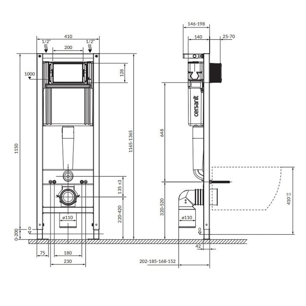 Rezervor WC incastrat, Cersanit Mech 40 K97-524, 41 x 116.5 cm, 3-5 L