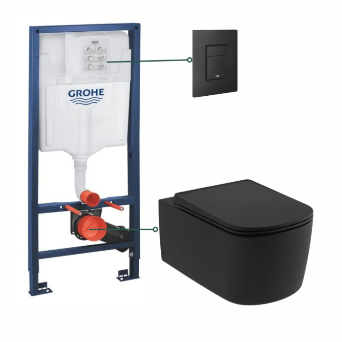 Set rezervor incastrat Grohe Solido 3 in 1 cu clapeta neagra mata Even