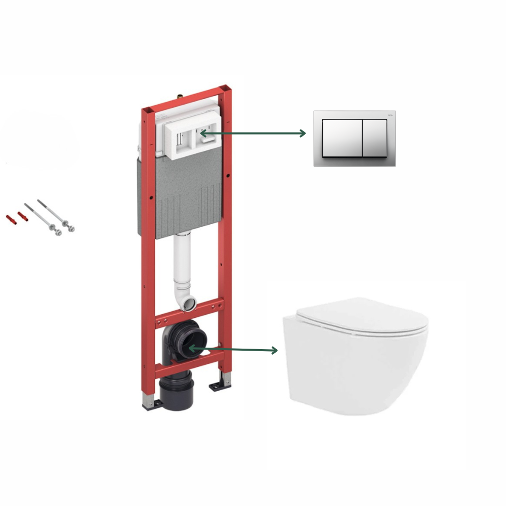 Transformă baia într-un spațiu modern, aerisit şi elegant cu setul „Ricci Tornado” de la Fluminia. Acest set include un vas WC suspendat cu montaj ascuns şi capac cu închidere lentă (Soft-Close) şi sistem rapid de demontare (Quick Release). Designul compact, cu dimensiuni de 36 × 49 × 34 cm, este ideal pentru băi de apartament, pentru pereţi mai înguşti sau pentru renovări rapide.