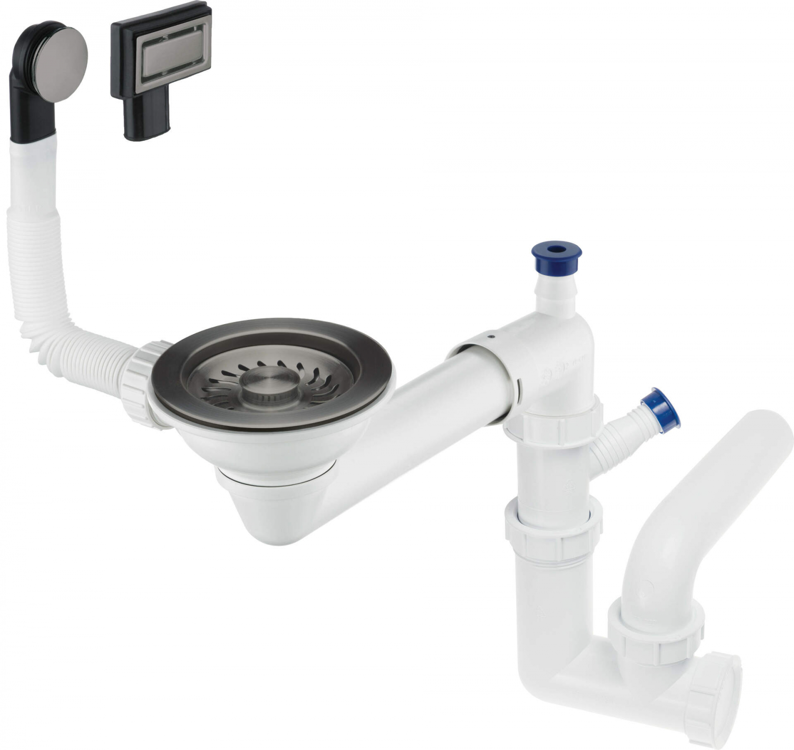Sifonul este prevăzut cu un dop de tip manual, iar locul pentru preaplin este poziționat în cuvă pentru a preveni revărsarea apei. O funcționalitate suplimentară este posibilitatea de a racorda o mașină de spălat vase sau rufe, facilitând integrarea electrocasnicelor în sistemul de scurgere.