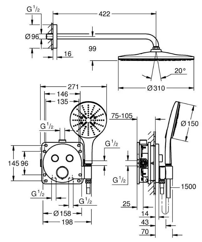 Sistemul de duș Grohe Precision SmartControl este proiectat pentru băile moderne premium unde controlul precis al apei, designul minimalist și tehnologia avansată sunt esențiale. Configurația încastrată oferă un aspect elegant și curat, fiind soluția ideală pentru amenajări contemporane, băi luxury sau proiecte hoteliere.