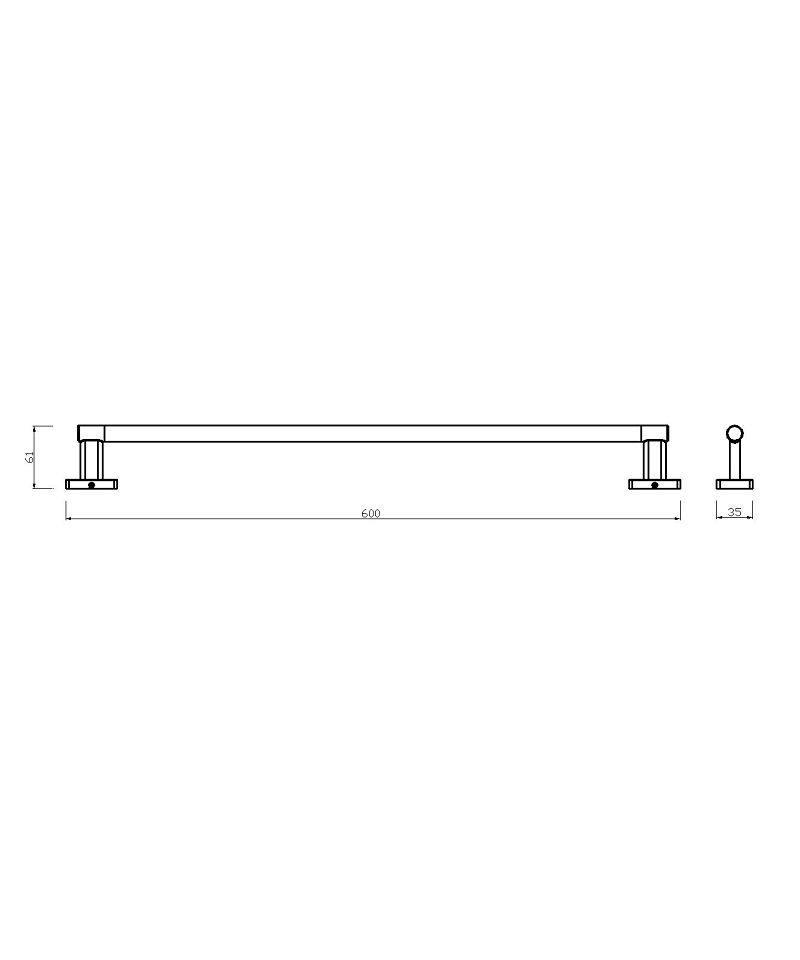 Dimensiunea de 600 mm (60 cm) oferă suficient spațiu pentru prosoape largi sau două prosoape mai mici, fără a aglomera spațiul. Designul simplu îl face versatil și eficient, ideal pentru utilizare în locuințe, apartamente sau spații comerciale.